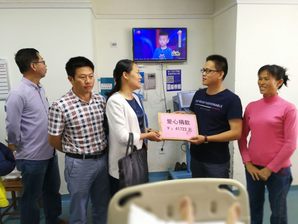 作為一家有社會(huì)責(zé)任心的企業(yè),綠港集團(tuán)董事長(zhǎng)、總經(jīng)理龔國強(qiáng)一直把“以人為本,關(guān)愛員工”這一核心文化理念落到實(shí)處,他告訴工會(huì)主席黃麗琴:“一定要叮囑家屬全力救治吳海有,廣泛發(fā)動(dòng)職工為吳海有同志捐款!” 一場(chǎng)愛心捐助活動(dòng)拉開帷幕。