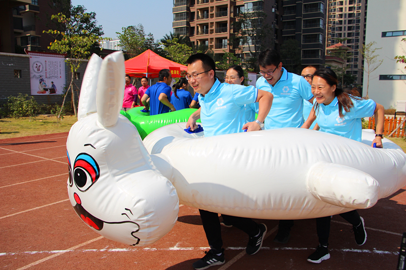 下午,雖然艷陽(yáng)高照,但是卻絲毫沒有影響參賽隊(duì)員們的熱情,賽場(chǎng)更是熱火朝天,加油聲此起彼伏,原來,這是最受職工歡迎和參與率最高的比賽環(huán)節(jié)——趣味類運(yùn)動(dòng)競(jìng)技。今年的趣味競(jìng)技設(shè)置了龜兔賽跑、快樂運(yùn)球、同舟共濟(jì)、滾鐵環(huán)、激情袋鼠、定點(diǎn)投籃和慢騎自行車等項(xiàng)目,既有團(tuán)體比賽,又有個(gè)人積分賽,大家結(jié)合自身的實(shí)際和特長(zhǎng)選報(bào)項(xiàng)目,全身心投入比賽。為了取得好成績(jī),午飯后,很多運(yùn)動(dòng)員放棄了休息,都在操場(chǎng)上反復(fù)練習(xí),不斷總結(jié)經(jīng)驗(yàn)。
