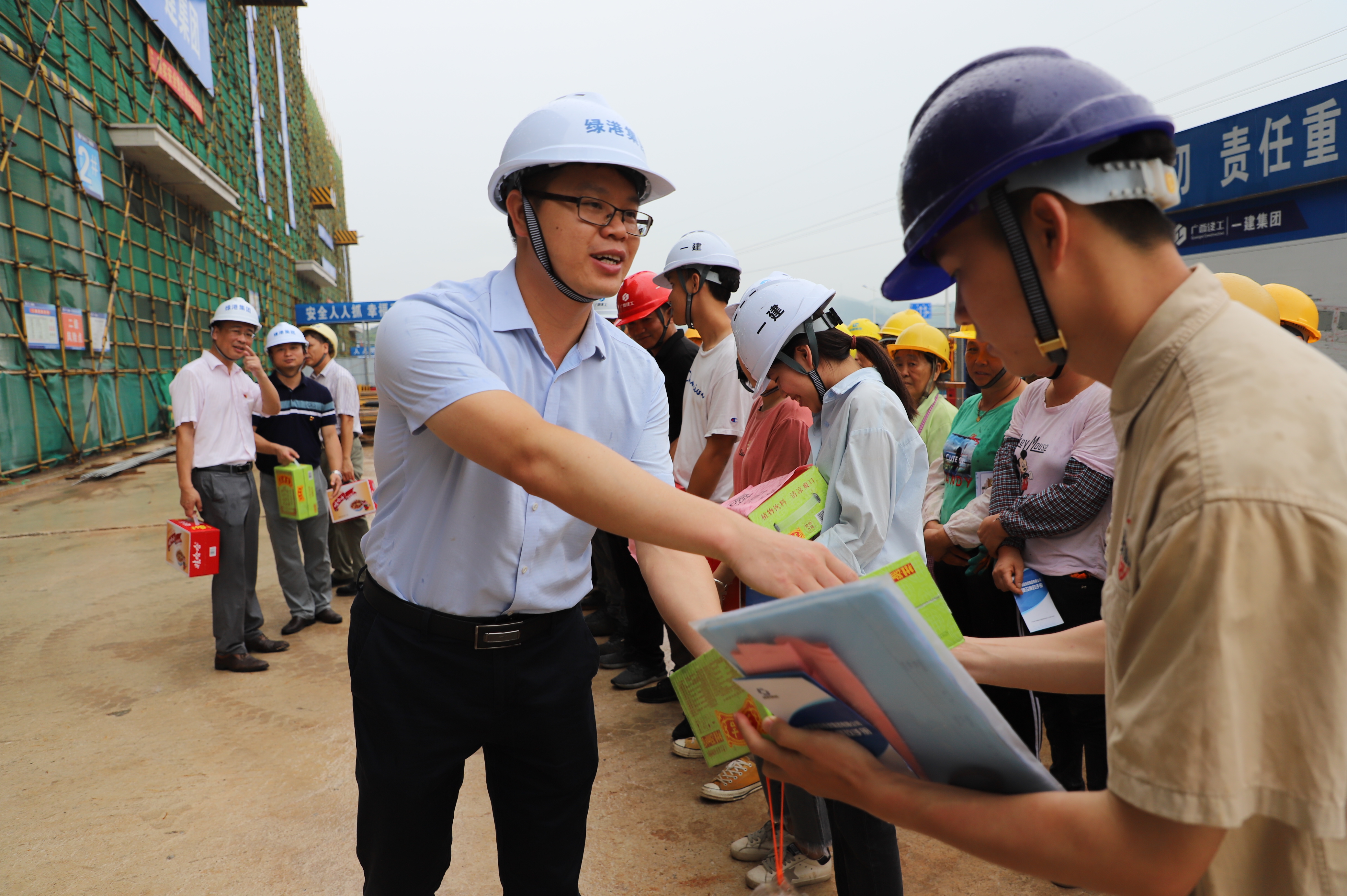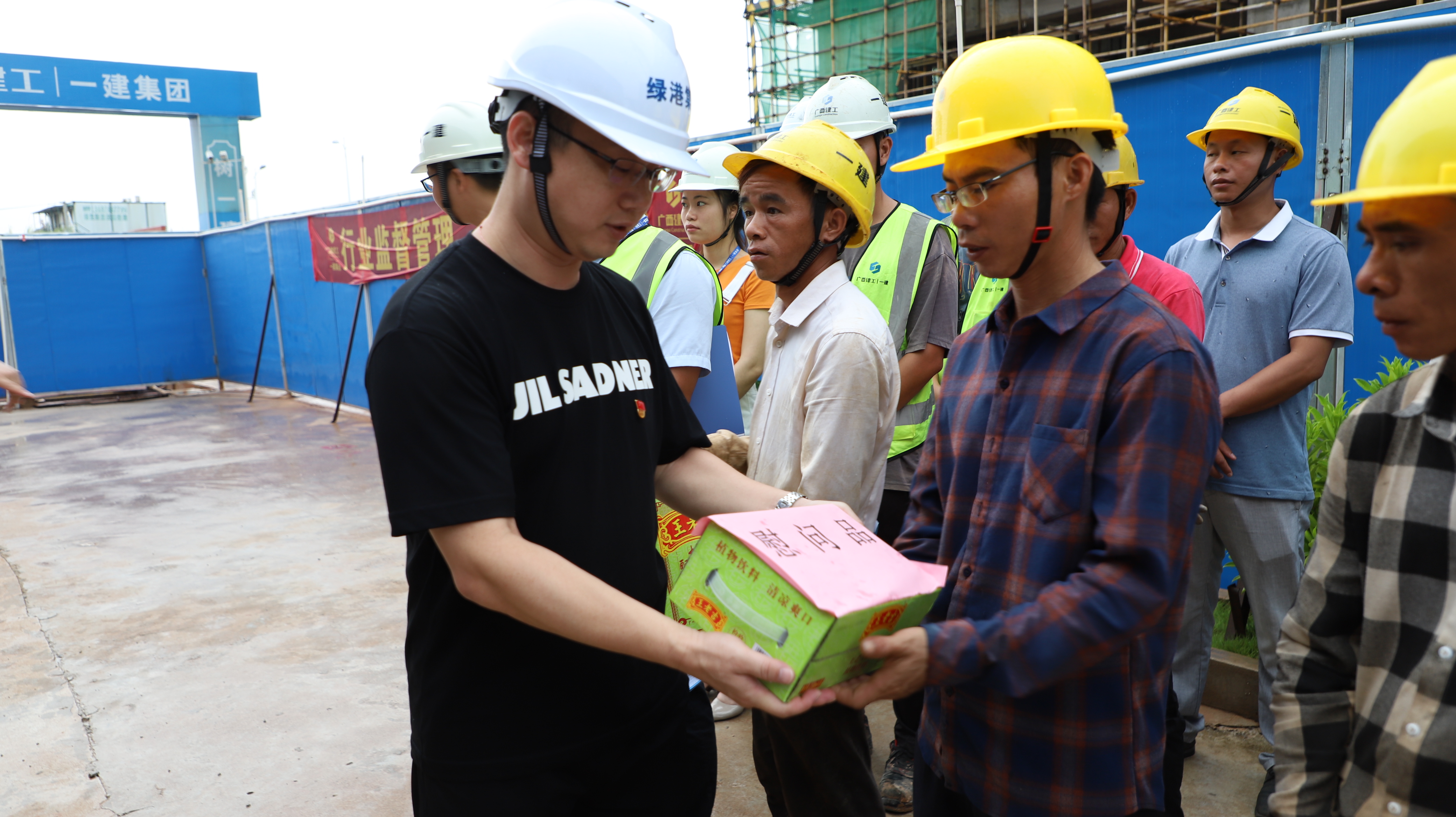 集團(tuán)黨委書記、董事長龔國強(qiáng)為工地的一線職工送上清涼慰問品