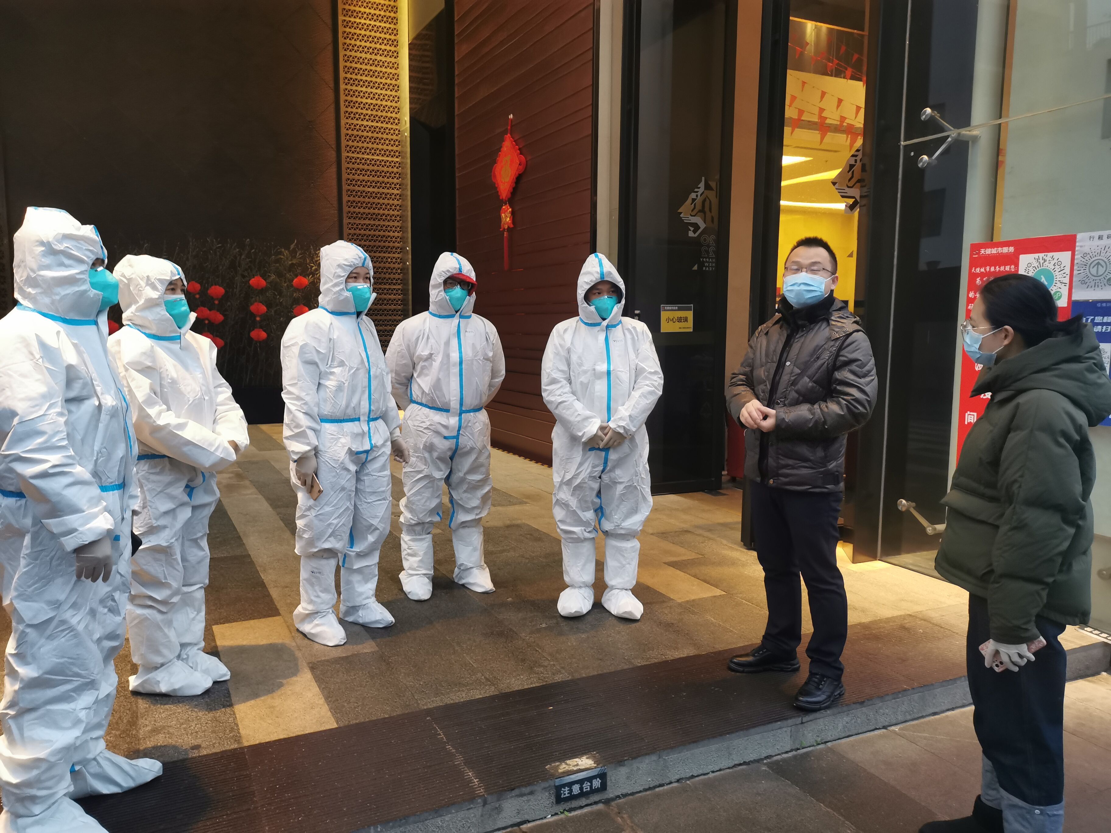 “您好!我們是疫情防控工作人員,由于在疫情排查過程中發(fā)現(xiàn)您的健康碼處于紅碼狀態(tài),因此要對您實行居家隔離措施,我們現(xiàn)在將在您的門口外安裝隔離門禁,請您按防控要求進行居家隔離等待上門核酸檢測?!睘樽龊靡咔榉揽毓ぷ?,保障群眾生命安全,有效控制和降低新冠肺炎疫情傳播風(fēng)險,切實落實常態(tài)化疫情防控工作的各項措施,2月10日,綠港集團迅速行動,配合社區(qū)工作人員對小區(qū)的居民進行掃碼排查,并對排查出的黃碼、紅碼人員實行居家隔離措施。每到一戶,綠港集團的工作人員針對居民的疫苗接種情況、家庭成員信息、近期出行軌跡進行詳細摸排,認真開展“三碼聯(lián)查”、測溫登記工作,從嚴從細防范疫情輸入。同時向居民宣傳疫情防護相關(guān)常識,告誡大家出門記得佩戴口罩、勤洗手多通風(fēng),盡量避免去人群聚集場所,關(guān)注官方權(quán)威發(fā)布,做到不信謠、不傳謠。