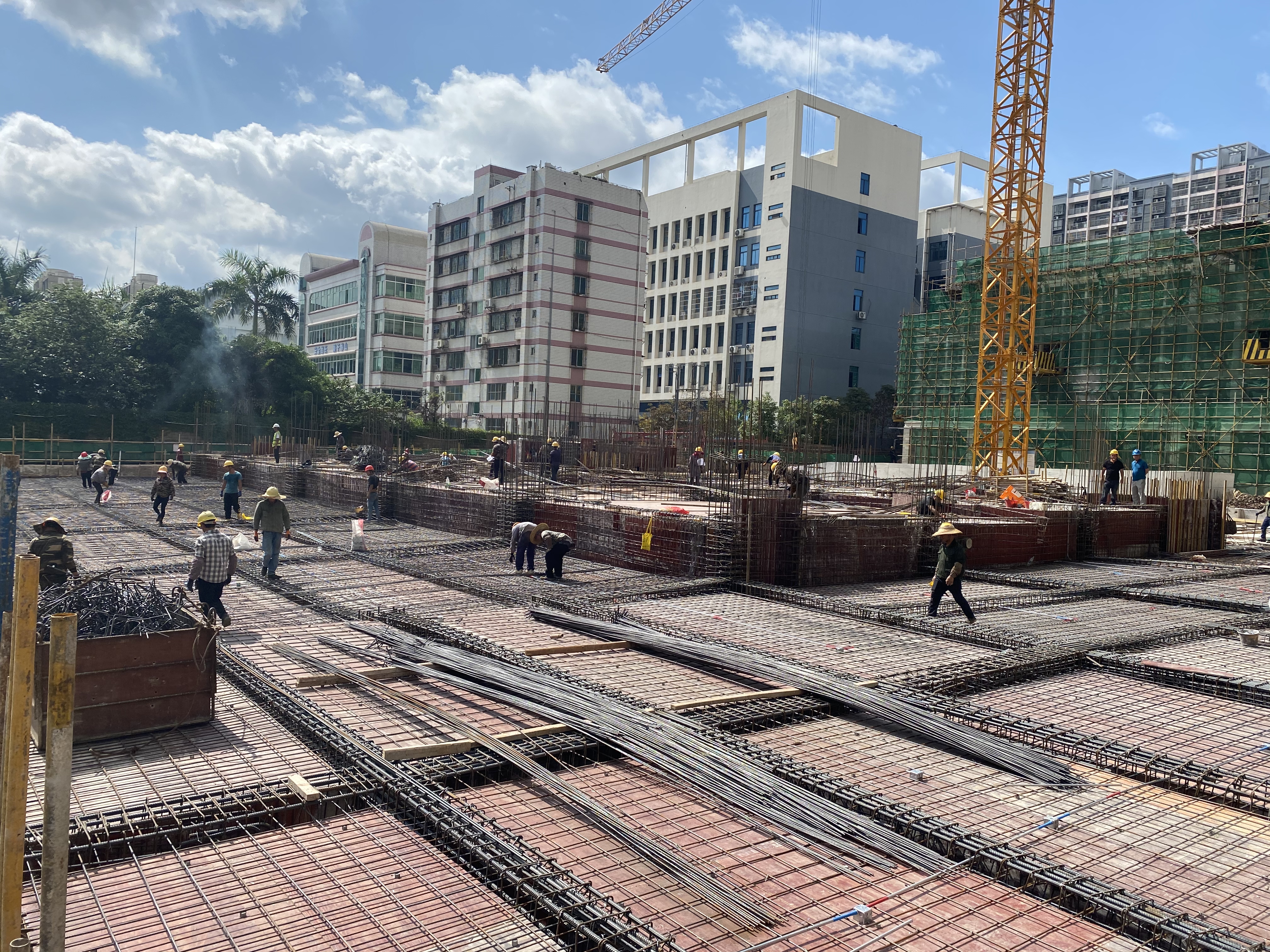 按照施工計劃,項目2#樓為最后施工的一個單體。因工作面有限,加上雨季施工,土方施工遭遇到前所未有的困難,最后幾千立方土,每一方都需要勾機(jī)采用二次甚至三次轉(zhuǎn)運(yùn)的方式才能裝車外運(yùn),對預(yù)定工期兌現(xiàn)造成極大影響。為克服困難,自土方開挖以來,綠港集團(tuán)下屬嘉通公司緊盯預(yù)售節(jié)點(diǎn)為目標(biāo),結(jié)合工程實際,制定了詳細(xì)、合理的搶工計劃,并迅速建立一支“強(qiáng)管理、控疫情、重安全、抓質(zhì)量”工作團(tuán)隊,全員爭分奪秒追上施工“加速列車”,與時間賽跑。同時要求參建單位優(yōu)化每道施工工序搭接,合理穿插施工,實行小雨不停工、大雨制造條件施工、天晴三班制搶工的施工方案。在先后克服了疫情反復(fù)、揚(yáng)塵噪音管控以及惡劣天氣帶來的各種問題,最終于6月30日取得喜人進(jìn)展,項目順利完成全部地下室工程的主體施工。