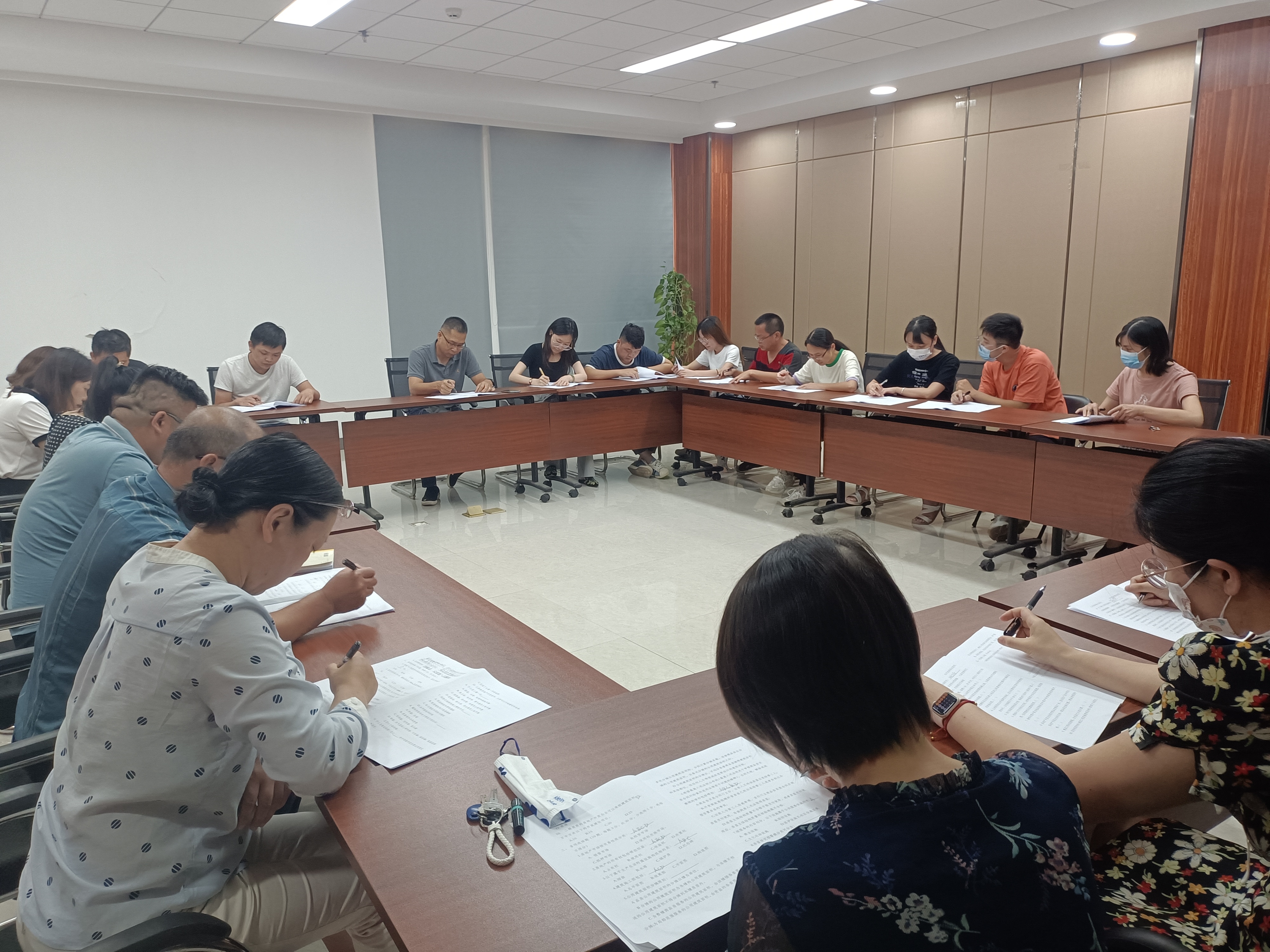競賽活動采取個人筆試比賽形式進行,競賽試題從《房地產開發(fā)業(yè)務基礎知識》題庫選取,題型為填空題、單選題、多選題、判斷題及問答題,競賽內容涵蓋了房地產基礎知識、房地產準備階段、前期階段、建設階段、營銷階段全流程業(yè)務知識以及房地產行業(yè)相關法律法規(guī)基礎知識,內容豐富,涉及面廣,貼近工作實際。競賽前,各員工在做好本職工作的同時,抽取業(yè)余時間認真查閱房地產知識,通過記筆記、反復專研、反復記憶等方式進行備考。競賽過程中,參賽選手們聚精會神,沉著應戰(zhàn)。經過近兩小時的“埋頭戰(zhàn)考”,各參賽選手在監(jiān)考員“考試時間到,請大家停止答題”的號令聲下放下筆,井然有序地提交試卷。