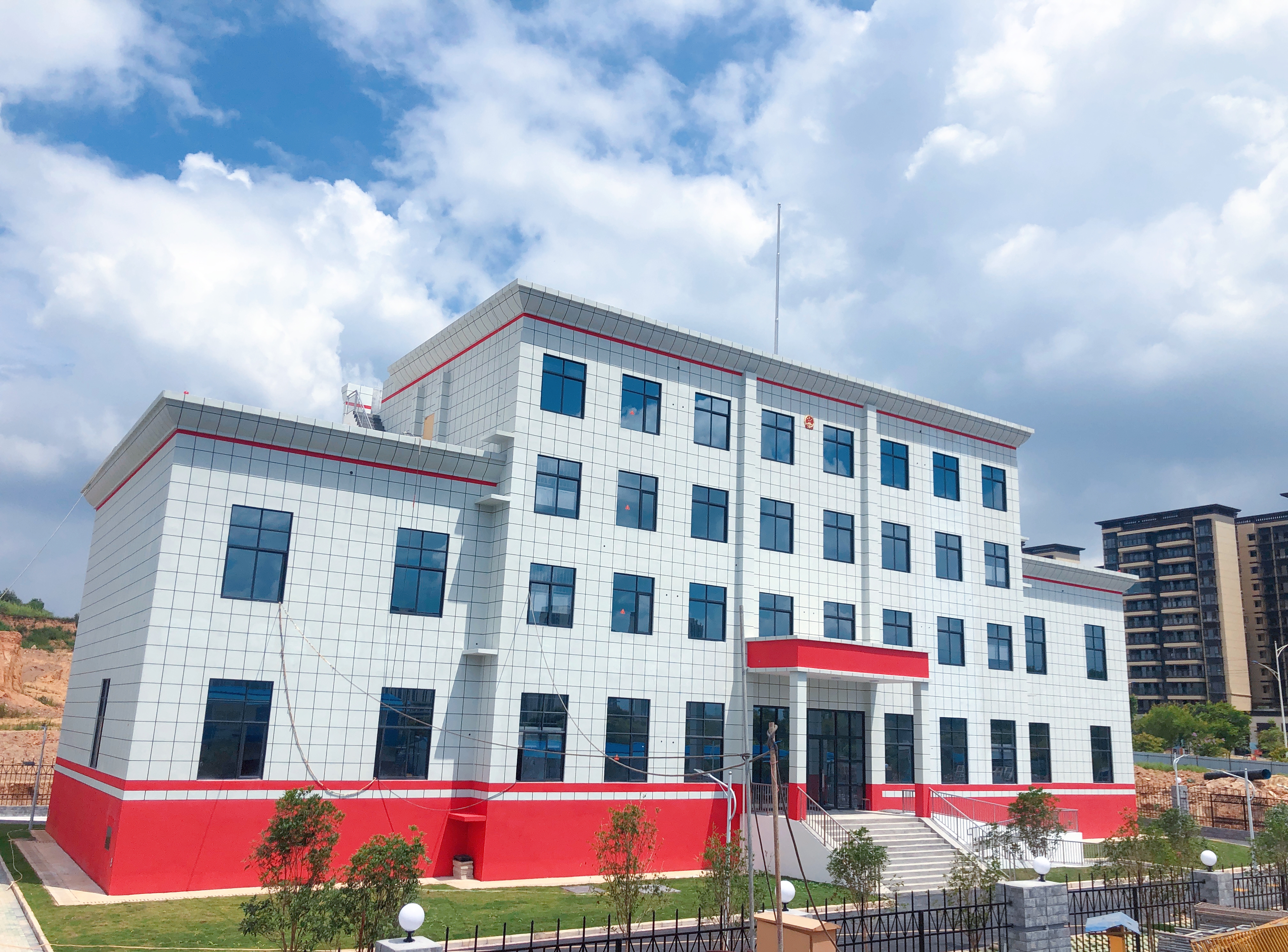 吳圩法庭回建工程是吳圩片區(qū)配套民生項目,為南寧經(jīng)濟技術開發(fā)區(qū)2022年城建計劃重點實施項目。項目位于吳圩鎮(zhèn)光明路西側、6號路北側,占地面積約8畝,總建筑面積3486.54㎡。主要建設內容為建設法院大樓,主要用于審批和辦公;建設輔助用房,主要用于員工食堂及附屬設施;總平配套工程等。項目自開工建設以來,科巨公司充分發(fā)揮建設鐵軍精神,積極協(xié)調各方攻克項目場地受限、變更手續(xù)繁復、資金緊缺、疫情影響、雨季施工等諸多困難;狠抓項目現(xiàn)場施工質量、安全文明施工管理、進度計劃控制等主要工作,督促各參建單位加大人力、物力投入,全力以赴抓質量、搶進度、保安全,掀起整個項目現(xiàn)場建設的高潮,最終提前40天順利完工,于8月6日順利通過竣工驗收。該項目布局規(guī)整,建筑風格穩(wěn)重莊嚴,體現(xiàn)法院的執(zhí)法公正的特性,建成后將提升吳圩法庭的辦公及服務環(huán)境,提高辦公效率,為吳圩人民群眾提供更好的法律服務場所和更優(yōu)質的司法服務。